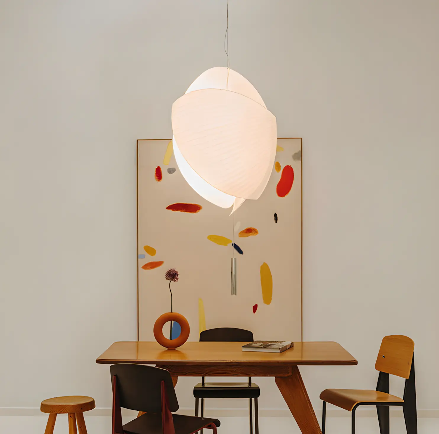 Akio is made by hand in France, using Japanese Washi paper material. The hanging pendants have an asymmetric shape—you’ll see a different look from every angle. It has a warm, dimmable LED bulb that helps create the perfect mood. This Akio hanging pendant will stand out in empty spaces, entryways, or stairwells.