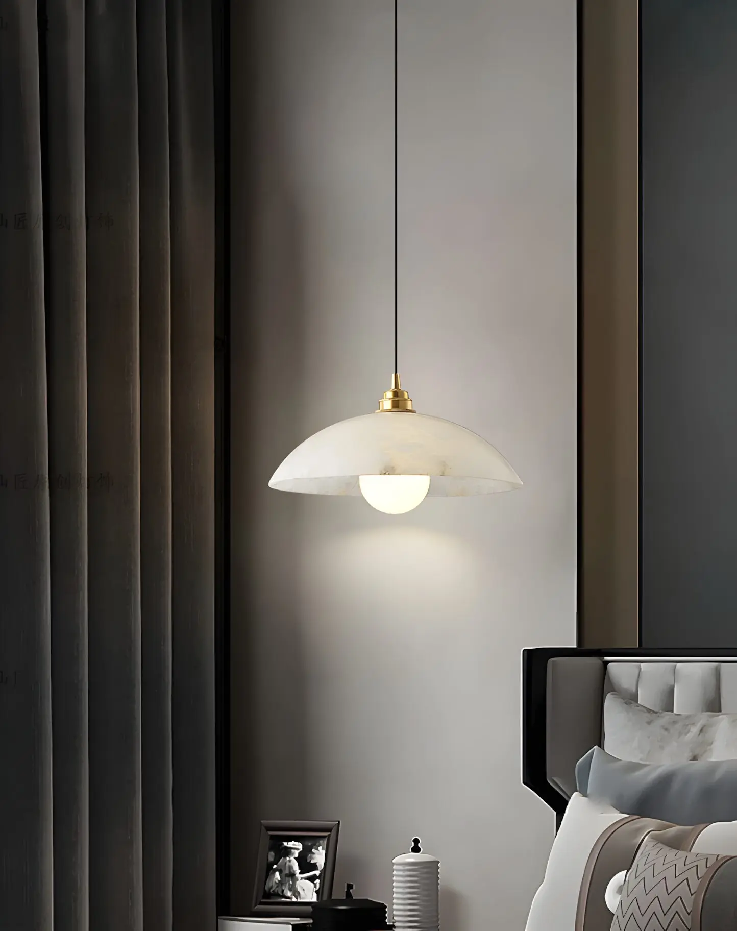 With a gold top that enhances its modern appeal. The marble shade provides soft illumination, perfect for creating a cozy, relaxing atmosphere. The gold accent complements the smooth marble, adding a touch of elegance to the piece. Its versatile design suits various home styles, from contemporary to modern.