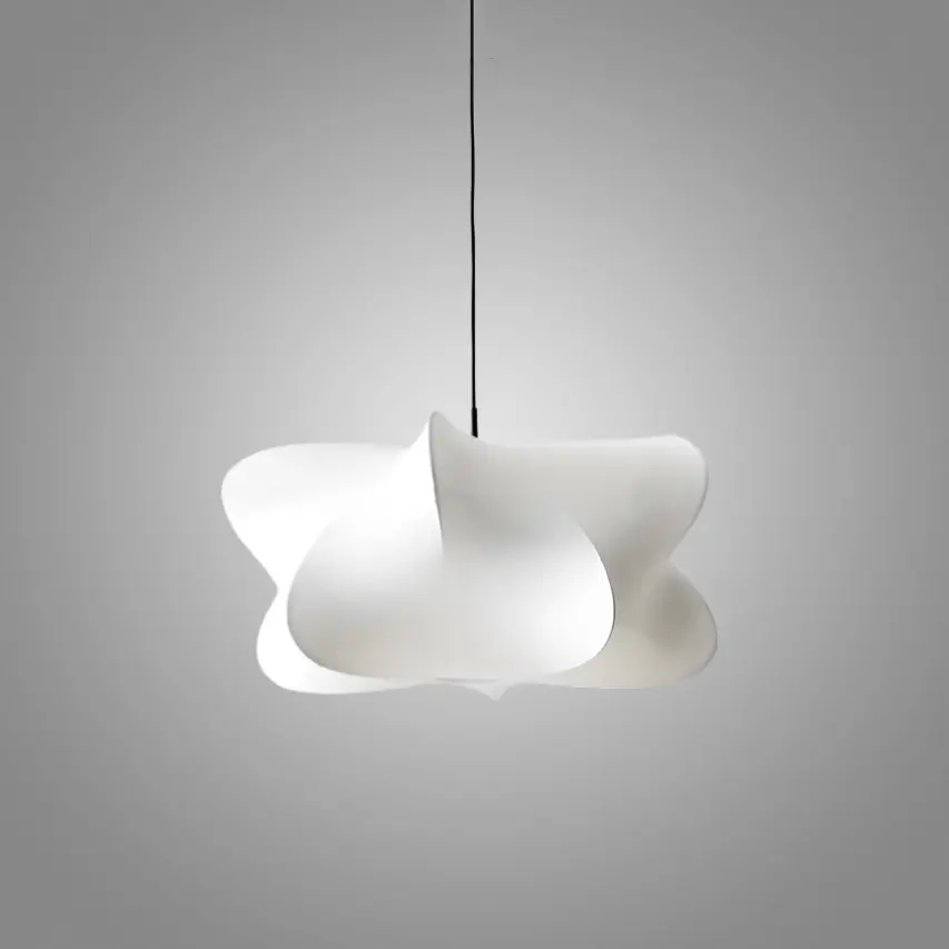 This silk pendant lamp features a flowing, sculptural design that creates a soft and elegant ambiance. The white silk material delicately diffuses the light, providing a warm, inviting glow.