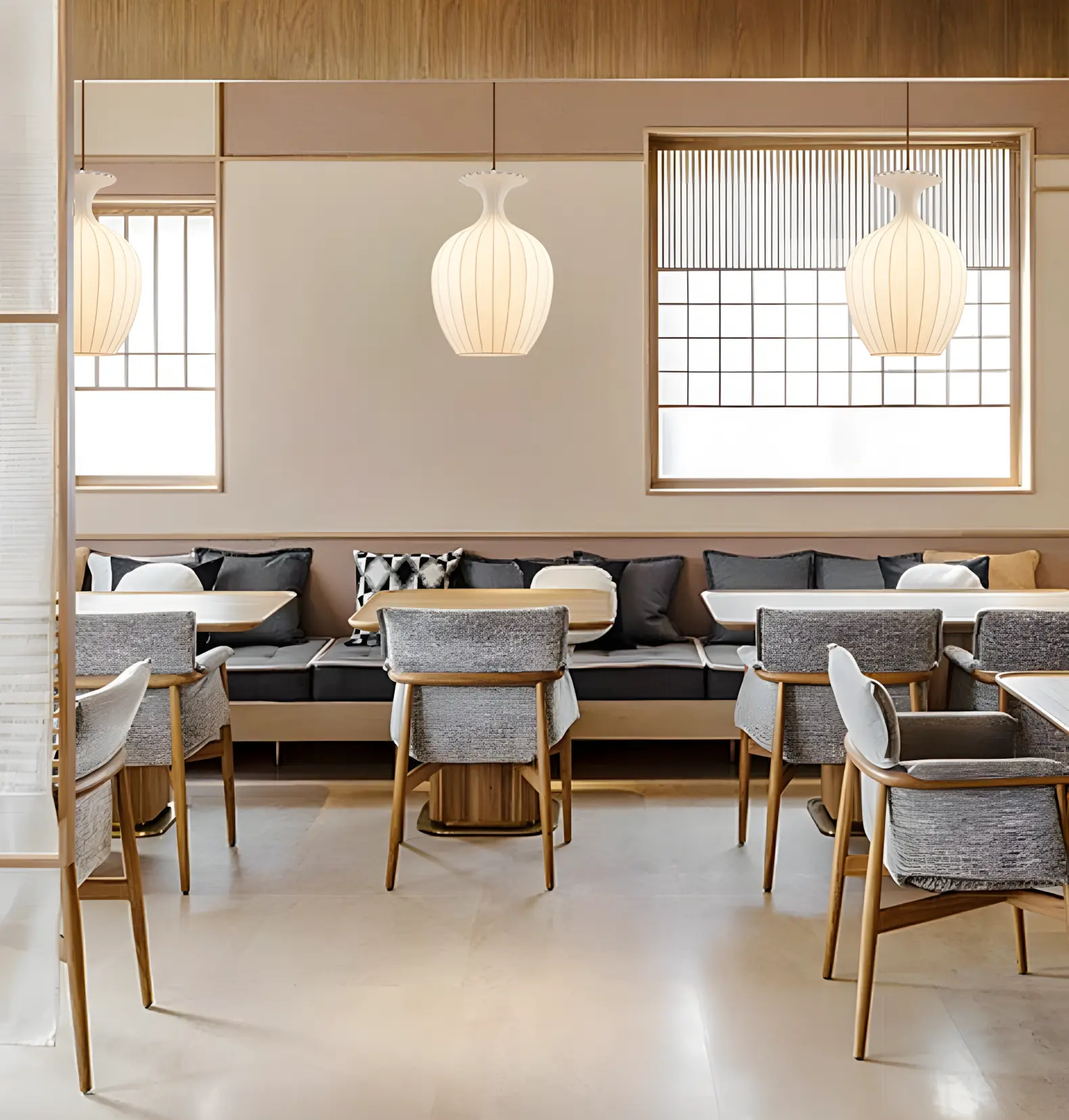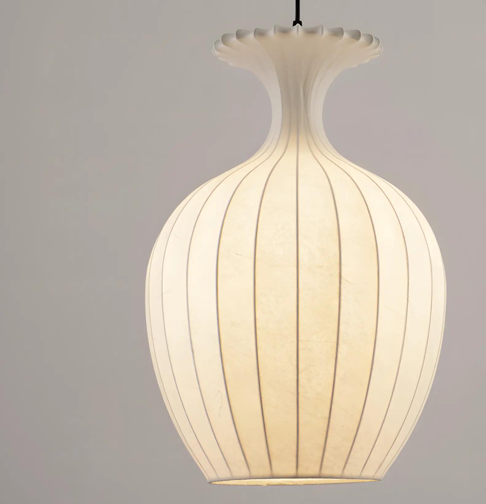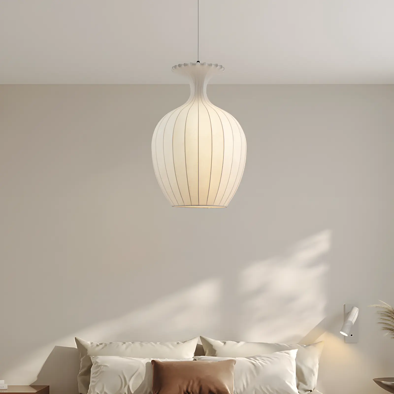 This wine glass pendant light has a sleek shape that feels elegant. Made with fine silk, its shade gives off soft, warm light—great for making rooms feel cozy. The silk is picked for its smooth texture, adding a touch of class. With clean lines, it fits modern homes. Hang it in bedrooms, dining areas, or living rooms to boost the look and light up the space.