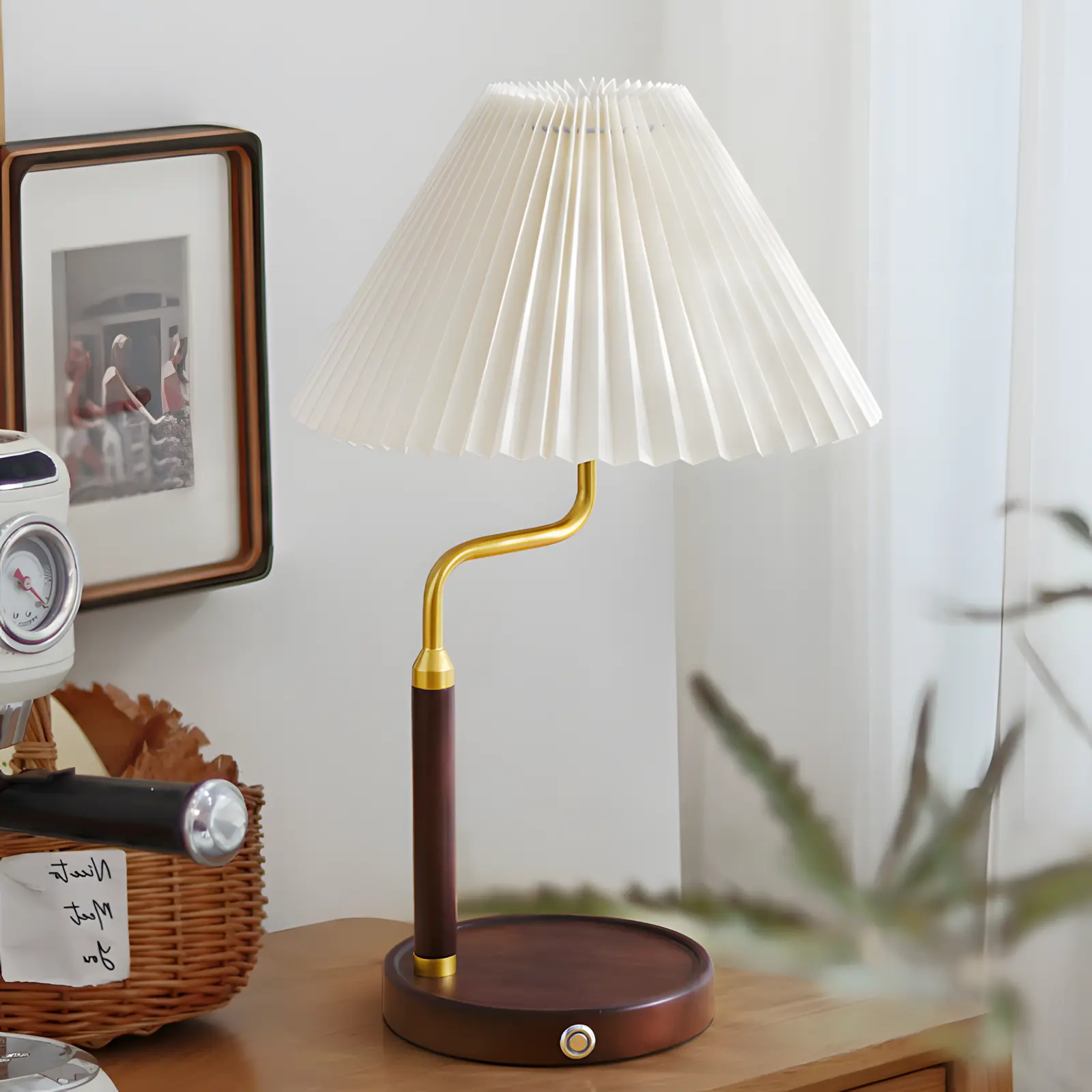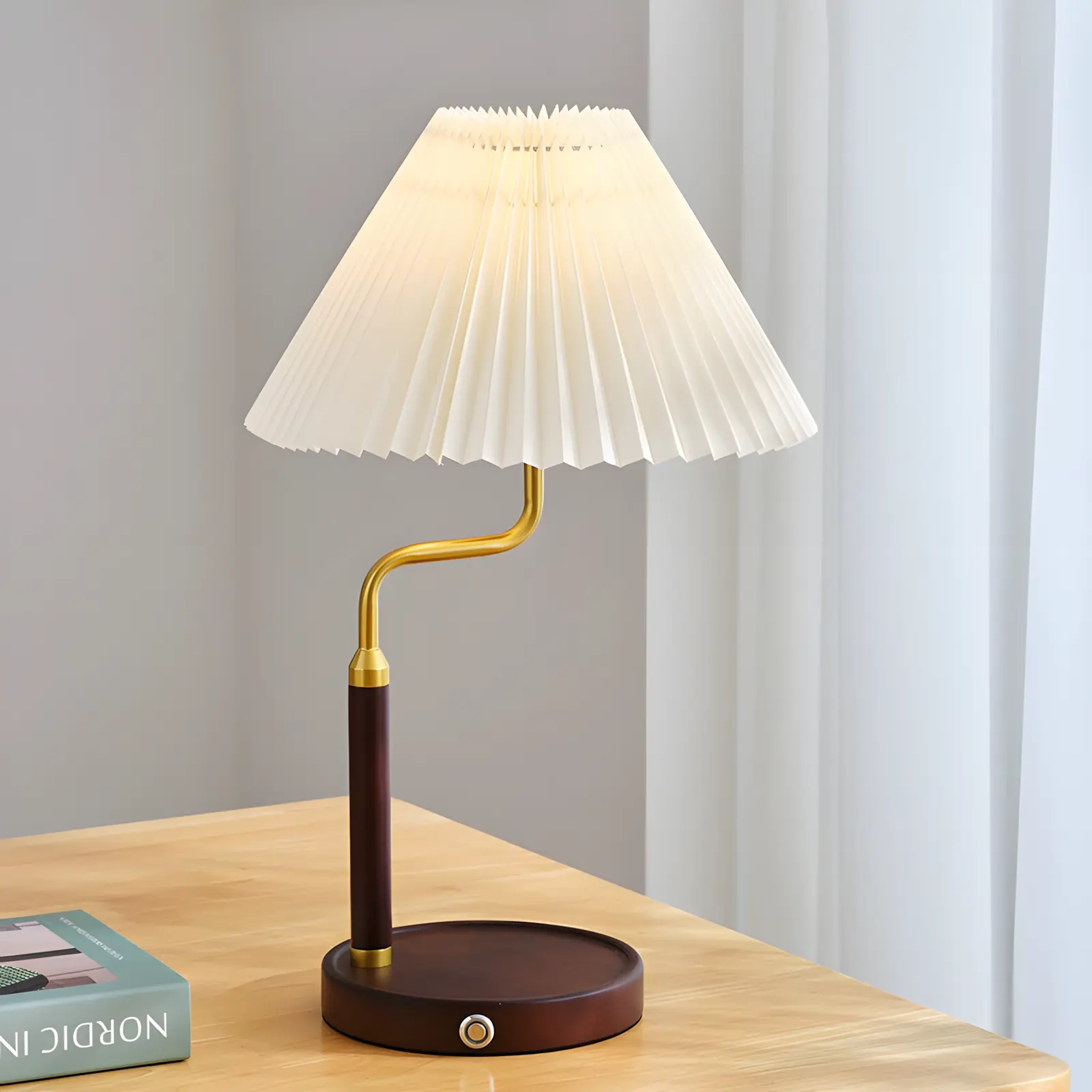 The Pia TL table lamp blends wood and iron for its frame, with a pleated fabric shade. The wood adds natural warmth, while the iron makes it sturdy. The fabric’s folds give a soft look, matching both modern and cozy rooms. It lights up spaces steadily and holds up well over time—great for bedrooms, desks, or living areas.