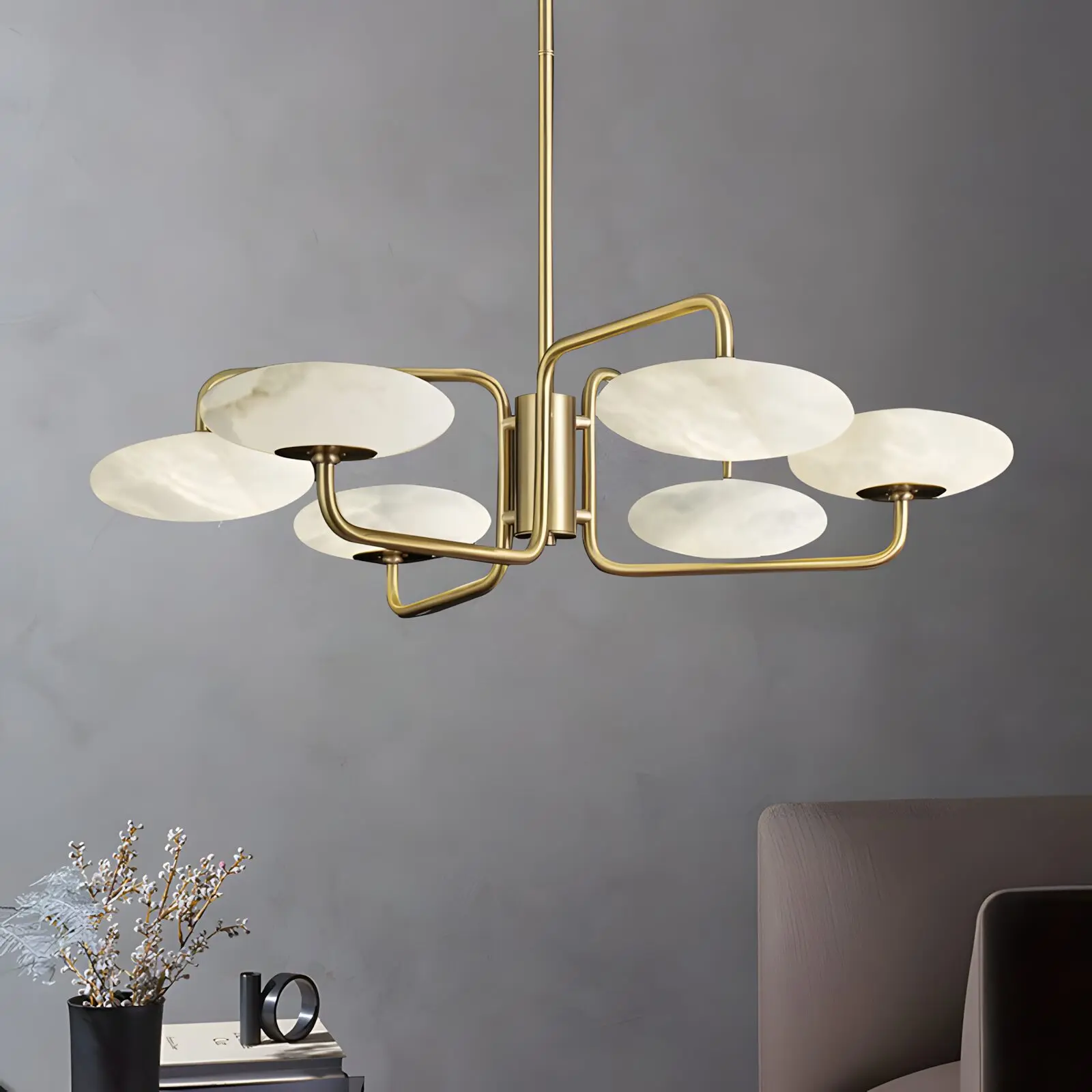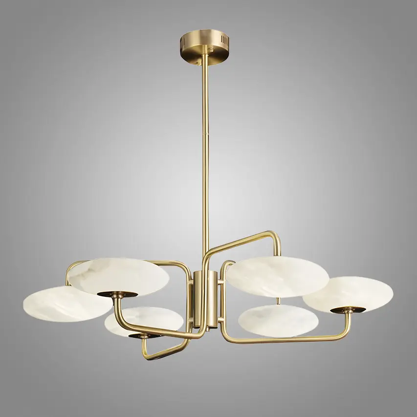 The gold-tone brass frame is sturdy and refined, providing a contemporary look while ensuring long-lasting durability. Each marble shade has a smooth surface that diffuses light evenly, giving your space a soft, ambient glow. The clean lines and minimalistic design make it ideal for modern or industrial home styles.