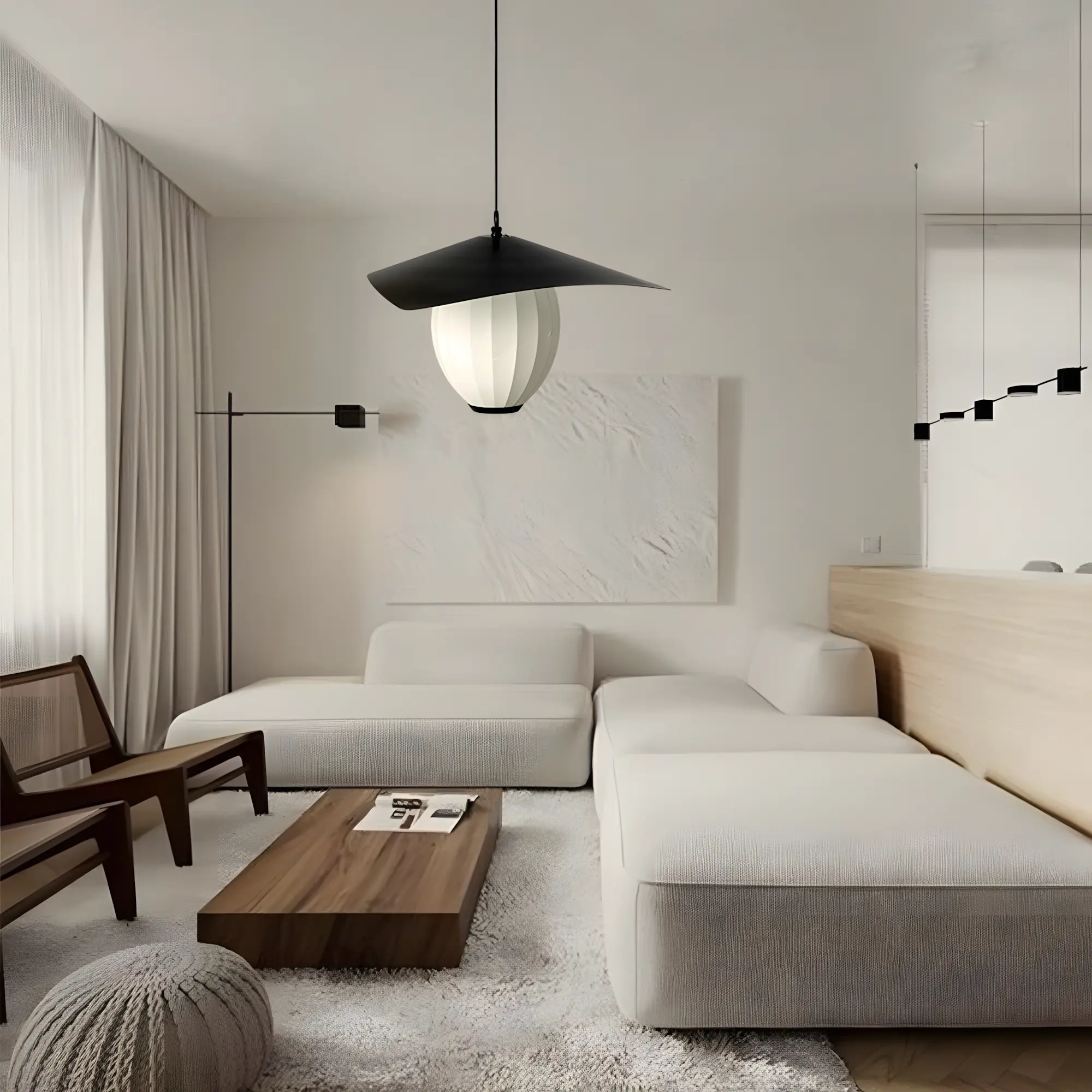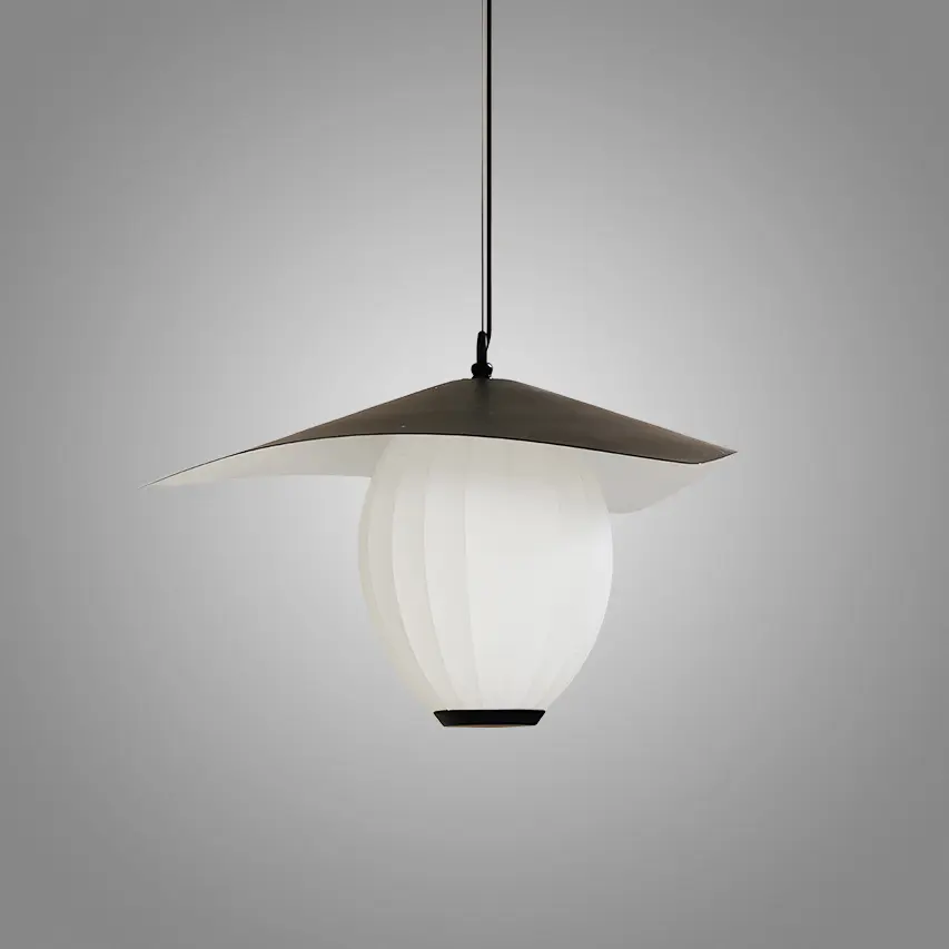 Satellite pendants shine with Rigitulle—a metal material crafted by the designers, looking soft like fabric. These metal sheets are folded and bent into unique shapes, giving each pendant a distinct look. The bulb is covered with perforated metal, which spreads warm ambient light. Its modern, creative style fits living rooms or dining areas, adding a cozy glow and stylish edge.