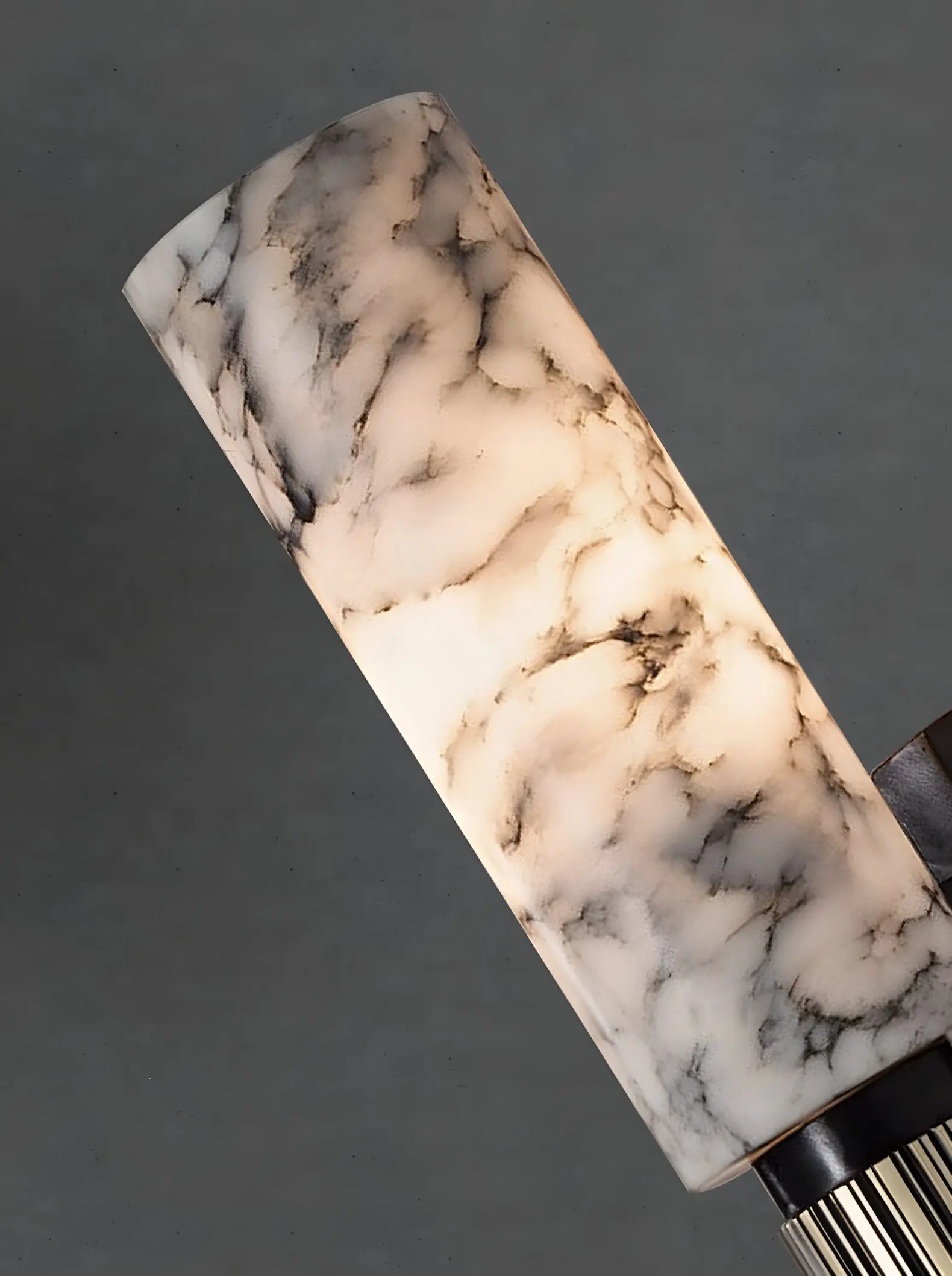 Featuring a blend of Spanish marble and gold accents, this wall light offers a stylish and elegant lighting solution. The marble shade, with its natural veining, exudes sophistication, while the gold finish adds a touch of modern luxury. The minimalist design and sleek cylindrical shape create a clean, refined appearance. The carefully crafted marble and polished gold elements ensure durability while enhancing the overall aesthetic.