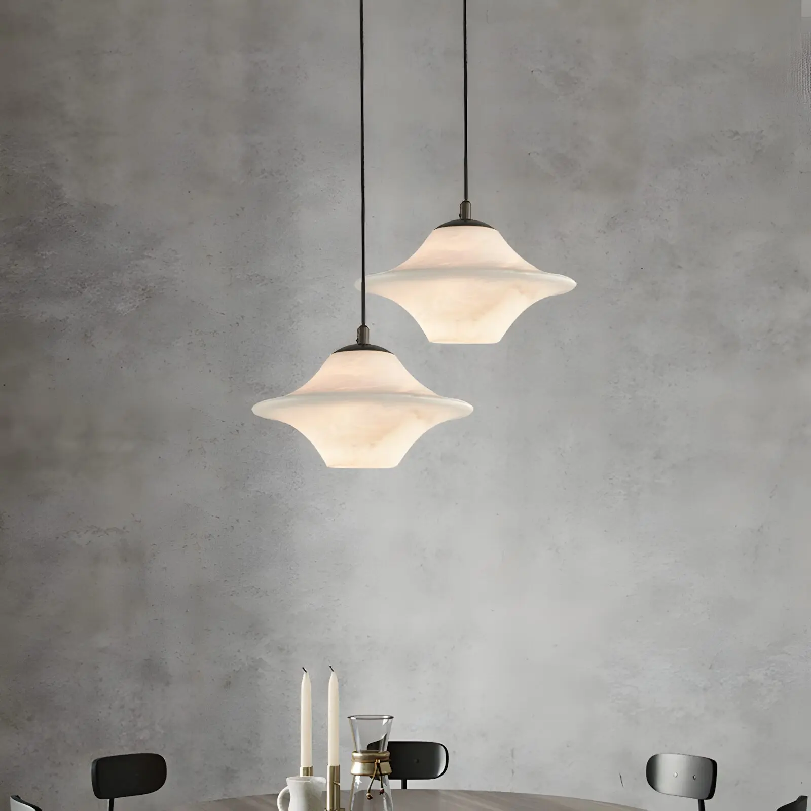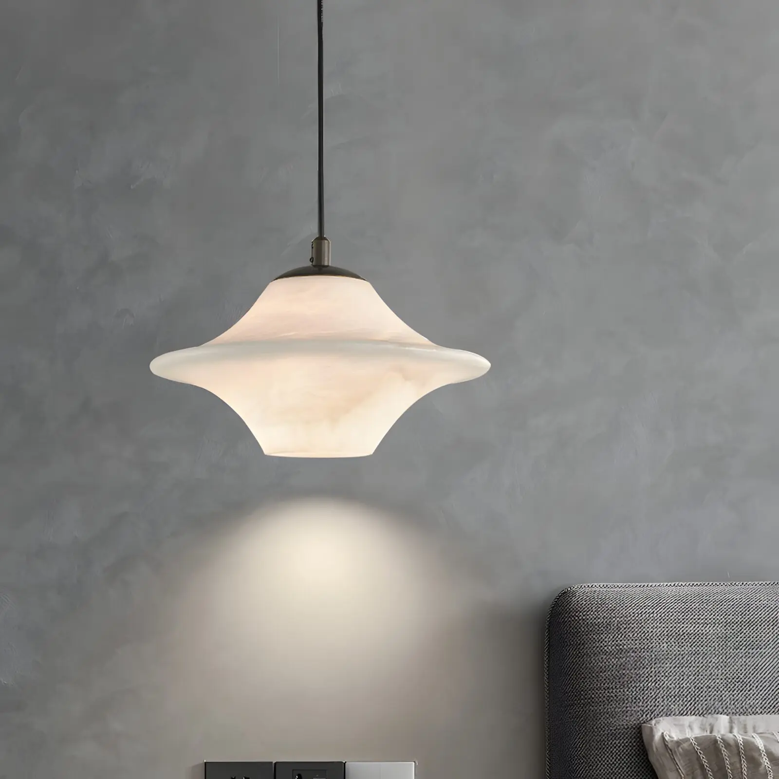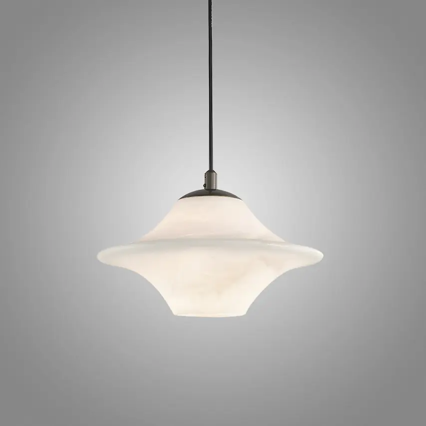 Perfect combination of style and functionality, this UFO pendant light is made from premium alabaster stone, known for its durability and smooth finish. Its unique design features a gently curving shape, smooth glossy surface enhances the soft glow, making it a perfect addition to modern interiors.